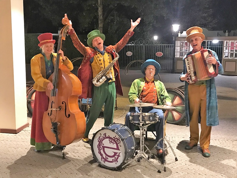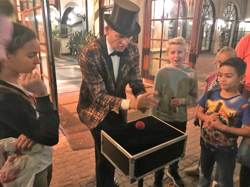 De wandelpaden tussen de attracties waren sfeervol verlicht en onderweg kwam je straatartiesten en sprookjesfiguren tegen. Zo was er een goochelaar die ballen in zijn mouw liet verdwijnen en die tot verbazing van de toekijkende kinderen weer in hun handen terug liet komen. Er was een fotograaf met een ouderwetse grote houten camera en bij de uitgang speelde een goede live band.